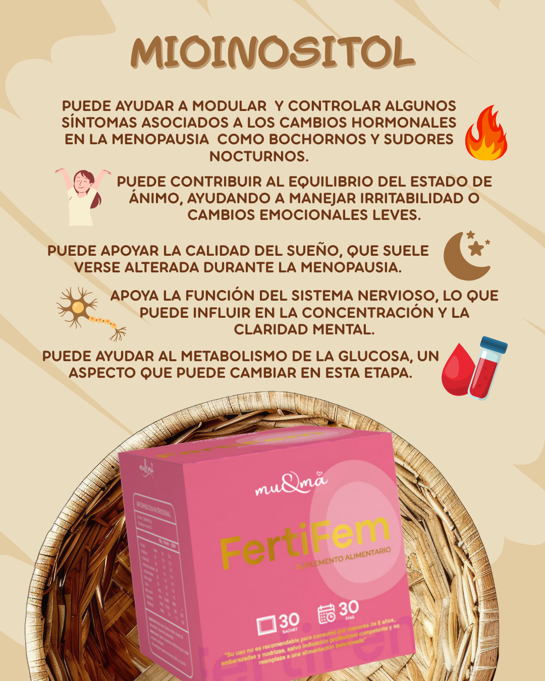- 1 caja de 💗FertiFEM (30 sachets) con MyoInositol + Vitaminas D, B9 y más: Fórmula premium que contribuye a tu bienestar durante los cambios naturales de la perimenopausia.